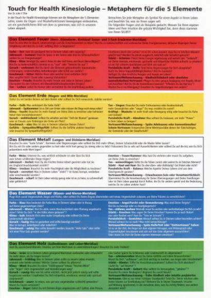 Die Metaphern zu den Fünf Elementen und allen TfH Muskeltests.